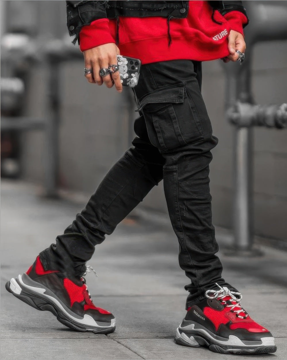deze cargo denim broek rock stijl