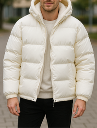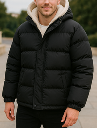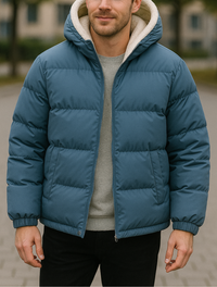 Ga de kou met vertrouwen tegemoet met deze gewatteerde herenjas met capuchon. De zachte voering van lamswol houdt je warm, terwijl de dikke buitenlaag de warmte vasthoudt. Het stijlvolle faux tweedelige ontwerp zorgt voor een moderne, gelaagde look zonder dat het jasje te dik wordt. Dankzij de duurzame stiksels en de comfortabele capuchon is het jasje perfect voor dagelijks gebruik, van woon-werkverkeer in de stad tot outdooravonturen. Combineer het met een donkere jeans of cargobroek voor een complete winteroutfit.Katoenen gewatteerde herenjas met capuchon van lamswol, dik gevoerde winterjas, modieuze tweedelige stijl | VIQA VIQA© NEDERLAND