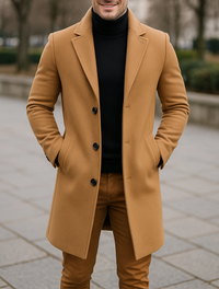 Deze lange trenchcoat voor heren combineert elegantie en functionaliteit voor de koudere maanden. Het single-breasted ontwerp zorgt voor een strakke, gestructureerde look die elke outfit naar een hoger niveau tilt. De jas is gemaakt van duurzame, windbestendige stof en biedt betrouwbare warmte zonder in te boeten aan stijl. Perfect voor zakelijke, casual of avondkleding tijdens de herfst en winter. Combineer hem met een pantalon of donkere jeans voor een verfijnde, complete look.Heren trenchcoat, lange mouwen, enkele knoopsluiting, klassieke herfst- en winterjas | VIQA VIQA© NEDERLAND