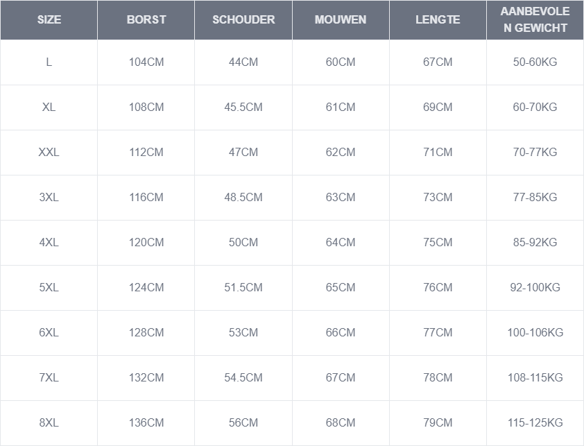 Inclusief maatvoering voor een perfecte pasvorm voor alle lichaamstypes en vormen.
