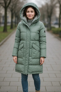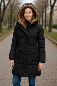 • Stijl: Lange winterjas met capuchon