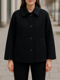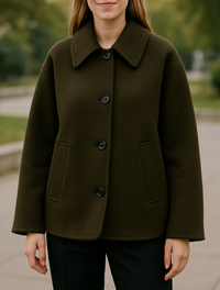 Deze damesjas van wolmix biedt zowel warmte als stijl in één veelzijdig stuk. Ontworpen met een losse, relaxte pasvorm, die gemakkelijk over elke outfit kan worden gedragen en je comfortabel houdt bij koeler weer. De korte snit geeft hem een moderne, chique look die perfect past bij casual of semi-formele kleding. Lichtgewicht maar toch knus, het is de go-to jas voor moeiteloos kleden in elk seizoen. Combineer hem met een smalle broek en enkellaarsjes voor een gepolijste alledaagse outfit.Korte Damesjas Van Wolmix, Losvallende Casual Top | VIQA VIQA© NEDERLAND