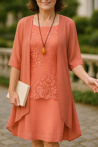• Stijl: Tweedelige midi-jurk met lang open jasje