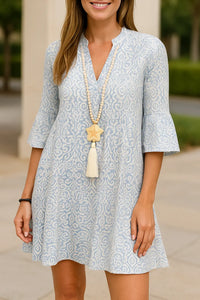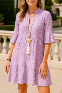 Dames Boho Mini Jurk, V-hals A-Line Pullover, Uitlopende Mouwen Herfst Casual Jurk | VIQA