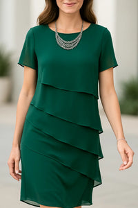 Deze elegante chiffon gelaagde midi-jurk is ontworpen voor dames die houden van een mix van comfort en stijl. De vloeiende chiffonstof en onregelmatige gelaagde zoom geven elke casual of feestelijke look een vleugje verfijning. De o-hals en korte mouwen bieden een chique, ademende pasvorm die perfect is voor warme zomerdagen. Of het nu voor een weekendbrunch, een zomerfeest of een wandeling op vakantie is, deze jurk combineert veelzijdigheid met moderne elegantie. Combineer hem met sandalen met riempjes of een slanke clutch om de outfit compleet te maken.Dames Chiffon Midi Jurk, Elegant O-Hals Gelaagde Korte Mouwen Zomer Feestjurk | VIQA VIQA© NEDERLAND