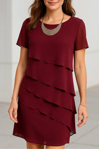 Dames Chiffon Midi Jurk, Elegant O-Hals Gelaagde Korte Mouwen Zomer Feestjurk | VIQA