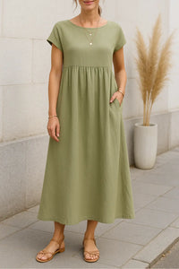 • Geschikt voor elk seizoen: Lange mouwen en midi lengte bieden perfecte dekking voor warme dagen of luchtige avonden.