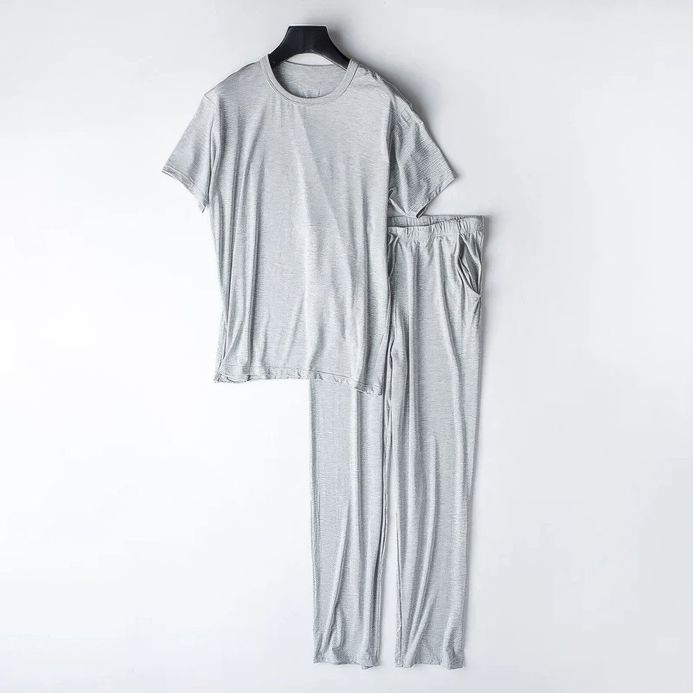 Ontspan in stijl met deze tweedelige pyjama met korte mouwen voor heren. Ontworpen met een dunne, ademende stof en een losse pasvorm, biedt deze homewear het ultieme comfort voor loungen, sporten of slapen. Blijf koel en stijlvol in deze casual slaapkleding, perfect voor warme seizoenen.