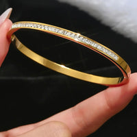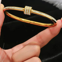 Verhoog je stijl met de geluksarmband met het klavertje vier, een prachtige mix van elegantie en symboliek. Deze chique armband is gemaakt van hoogwaardig roestvrij staal en vertegenwoordigt geluk, liefde, hoop en geloof, waardoor het de perfecte accessoire is voor elke gelegenheid. Het strakke, op spijkers geïnspireerde ontwerp voegt een modern randje toe, terwijl de stralende gouden afwerking de luxueuze aantrekkingskracht versterkt. Of hij nu alleen gedragen wordt of gestapeld met andere armbanden, deze armband vult moeiteloos elke outfit aan. Een tijdloos stuk dat zowel mode als geluk om je pols brengt.