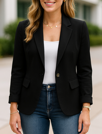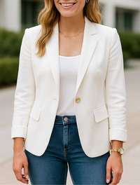 • Gepolijste professionele stijl: Scherpe revers en knoopontwerp geven elke outfit direct een upgrade.