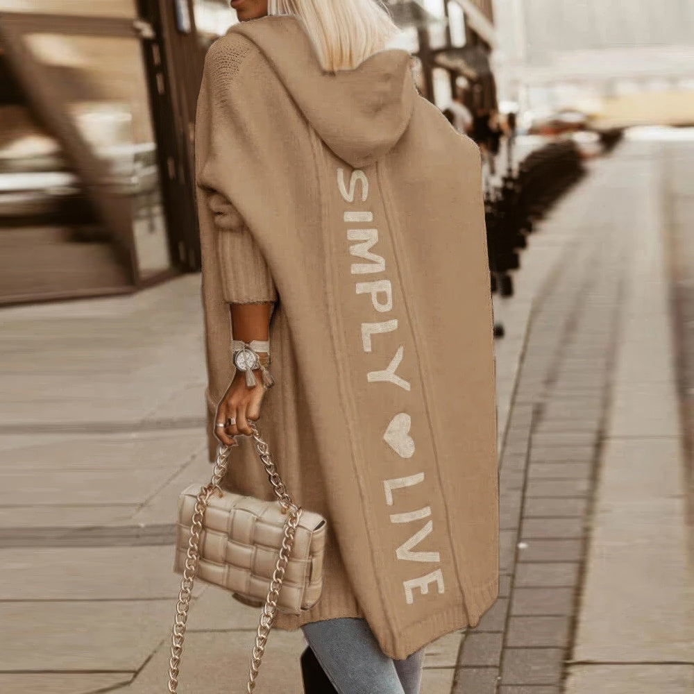 Blijf moeiteloos stijlvol met deze gebreide damestrui met capuchon. Met trendy letterprints en een relaxte pasvorm voegt deze knusse trui een modieuze streetwear vibe toe aan je najaarsgarderobe. Het vest heeft volle mouwen en een capuchon en is perfect om over elke outfit te dragen. Het combineert warmte met een chique stijl voor een moderne look.