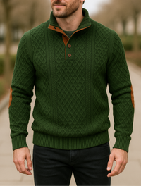 Heren Jacquard Gebreide Trui, Staande Kraag Button-Down, Lange Mouwen Casual Top | VIQA
