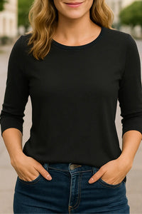 Blijf ontspannen met deze luchtige essential die de hele dag met je meegaat. Deze top met 3/4 mouwen is ontworpen voor vrouwen die houden van een relaxte look zonder afbreuk te doen aan stijl en combineert eenvoud met chique uitstraling. De zachte, ademende stof houdt je koel, terwijl de losse pasvorm elk figuur flatteert. Of je nu boodschappen gaat doen of gaat genieten van een informele brunch, met deze blouse zie je er altijd goed uit. Combineer hem met jeans of shorts en minimale accessoires voor een complete, moeiteloze outfit.Dames Casual Blouse, Loose Fit 3/4 Mouwen Ronde Hals T-Shirt, Effen Kleur Top | VIQA VIQA© NEDERLAND