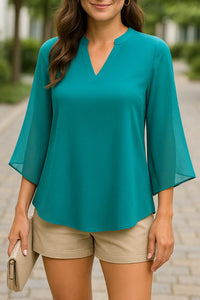Deze chiffon top met bloemetjesmouwen combineert comfort en charme voor een gemakkelijke, luchtige zomerlook. Ontworpen met een flatterende V-hals en vloeiend silhouet, is het de perfecte mix van ontspannen en verfijnd. De zachte, ademende stof houdt je koel tijdens warme dagen zonder afbreuk te doen aan stijl. De lichtgewicht drapering beweegt met je mee, waardoor het ideaal is voor casual uitjes, vakanties of een brunch met vrienden. Combineer het moeiteloos met denim shorts, linnen broeken of een strakke minirok om je zomerklare outfit compleet te maken.Dames Chiffon V-Hals Top, Los Fit Zomer T-Shirt Met Bloemblaadjes Mouwen, Lichtgewicht Casual Blouse | VIQA VIQA© NEDERLAND