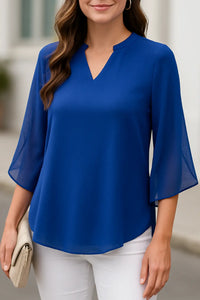 Dames Chiffon V-Hals Top, Los Fit Zomer T-Shirt Met Bloemblaadjes Mouwen, Lichtgewicht Casual Blouse | VIQA VIQA© NEDERLAND