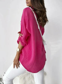 Maak een zelfverzekerd statement met deze stijlvolle zomer blouse, ontworpen voor moderne dames die comfort willen zonder afbreuk te doen aan stijl. De relaxte pasvorm en lange mouwen zorgen voor een gepolijste maar toch relaxte look, ideaal voor op kantoor en in het weekend. De levendige kleur geeft je outfit energie, terwijl de ademende stof je de hele dag op je gemak houdt. Perfect voor overgangsseizoenen en gelaagdheid tussen verschillende stijlen. Draag hem met een jeans met hoge taille of een getailleerde broek om je alledaagse power look compleet te maken.