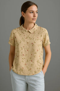 Trek de aandacht in deze lichtgewicht blouse met pofmouwtjes, die charme combineert met modern gemak. Deze ademend top is ontworpen voor de zelfverzekerde vrouw die waarde hecht aan comfort en moeiteloze stijl en combineert een flatterende omgeslagen kraag met een ontspannen silhouet. De zachte stof zorgt ervoor dat de comfortabel blouse de hele dag gedragen kan worden, terwijl de opvallende geometrische print een speelse twist geeft. Ideaal voor casual dagen of geklede avonden, het is een kledingstuk waar je steeds weer naar zult grijpen. Combineer hem met een jeans met hoge taille of een strakke midi-rok om je look compleet te maken.Leeanna Gebloemd Zomer Blouse VIQA© NEDERLAND
