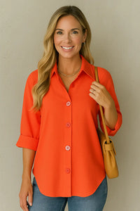 Lynnette Dames Oranje Blouse Met Lange Mouwen