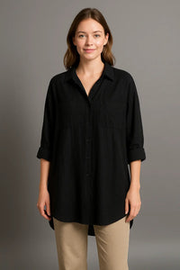 Stap in tijdloze stijl met deze ademende zomerblouse met knoopsluiting - ontworpen voor dames die waarde hechten aan comfort zonder afbreuk te doen aan verfijning. Met zijn zachte drapering en ontspannen silhouet gaat deze top met lange mouwen naadloos over van kantoor naar na de werkuren. De subtiele vintage details geven het een fashion-forward randje terwijl het praktisch blijft voor dagelijks gebruik. Lichtgewicht en ademend, ideaal voor de lente en zomer. Combineer hem met een broek met hoge taille of een strakke kokerrok om de look compleet te maken.Dames Zomer Ademend Blouse Met Lange Mouwen VIQA© NEDERLAND