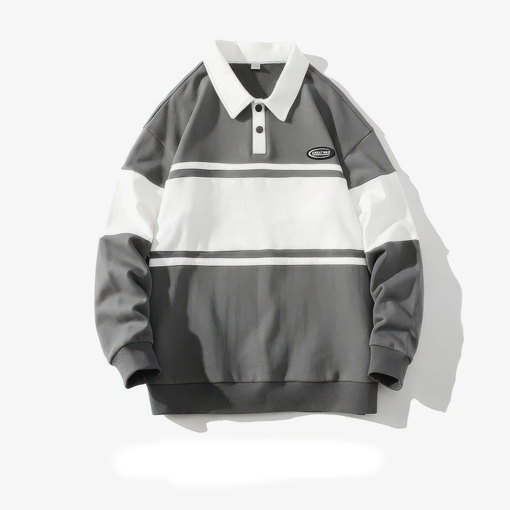 Heren Harajuku Gestreepte Polo Met Lange Mouwen