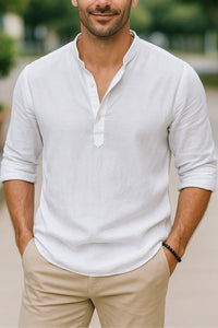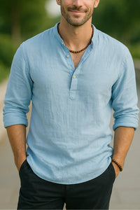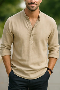 Adem gemakkelijk en beweeg vrij in dit herenoverhemd met lange mouwen van katoen-linnen, ontworpen voor warme dagen en ontspannen omgevingen. De lichtgewicht, ademende stof zorgt de hele dag door voor comfort en geeft je een strakke, gestructureerde look. Een perfecte mix van katoen en linnen biedt het beste van twee werelden - natuurlijke zachtheid met een frisse, casual stijl. Het effen kleurenontwerp houdt het veelzijdig voor zowel casual als semi-formeel gebruik. Combineer het met chino's, jeans of een linnen broek voor een complete relaxte outfit die er toch gepolijst uitziet.Heren Linnen Shirt Met Lange Mouwen, Ademende Casual Katoen Mix Effen Kleur Top | VIQA VIQA© NEDERLAND