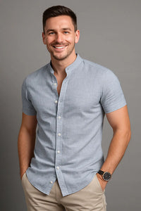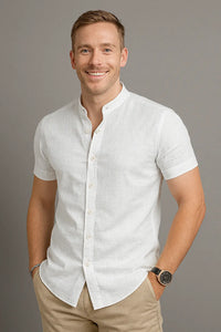 Deze ademende linnen heren shirt is uw go-to voor moeiteloze zomer. Ontworpen met een strakke opstaande kraag en lichtgewicht stof, is het perfect voor dagen met warm weer op het strand of in de stad. Het ontspannen model met korte mouwen biedt mobiliteit en comfort, terwijl de effen kleur het makkelijk maakt om te mixen en matchen. Dit geraffineerde shirt houdt je scherp en ontspannen waar de dag je ook brengt. Combineer het met een chino of linnen broek en leren sandalen voor een complete zomerse look.Vince Heren Linnen Casual T Shirt Met Korte Mouwen VIQA© NEDERLAND