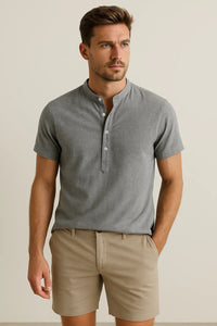 • Stijl: Henley overhemd, korte mouw