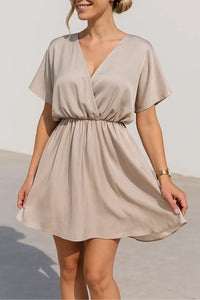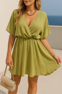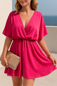 Deze elegante mini jurk combineert een flatterende V-hals met een luchtig A-lijn silhouet voor een look die moeiteloos stijlvol is. De jurk is ontworpen voor comfort en beweging en is perfect voor alles van stranddagen tot casual avondjes uit. De effen kleur en zachte stof zorgen voor een chique, minimale esthetiek die gemakkelijk aan te kleden is. Korte mouwen voegen een vleugje charme toe en de losse pasvorm houdt het licht en ademend. Combineer het met strappy sandalen of enkellaarsjes om de look af te maken.Dames Sexy Zomer Mini Jurk, Korte Mouw A-lijn Casual Zomer Strand Feest Jurk | VIQA VIQA© NEDERLAND