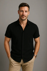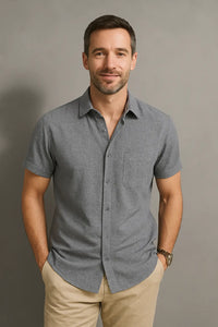 Verhoog je stijl met dit zomeroverhemd van katoen-linnen voor heren met korte mouwen, ontworpen voor moeiteloos comfort en een strakke, moderne look. Lichtgewicht en ademend, het houdt je koel zonder stijl op te offeren, perfect voor warme dagen en casual uitjes. De gestructureerde zwarte knopen voegen een scherp accent toe aan het effen kleurenontwerp, waardoor het een veelzijdig stuk is voor elke garderobe. Of je nu gaat brunchen of vrienden ontmoet, dit shirt houdt je comfortabel en gepolijst. Combineer het met een chino-short of slim-fit jeans voor een ontspannen maar verfijnde outfit.Finn Heren Zomer Ademend Linnen T-Shirt VIQA© NEDERLAND
