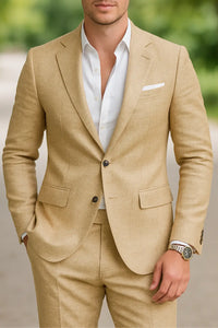 Heren Linnen Zomerpak Set, 2-delige Slim Fit Strand Bruiloft Outfit, Notch Revers Blazer En Broek | VIQA